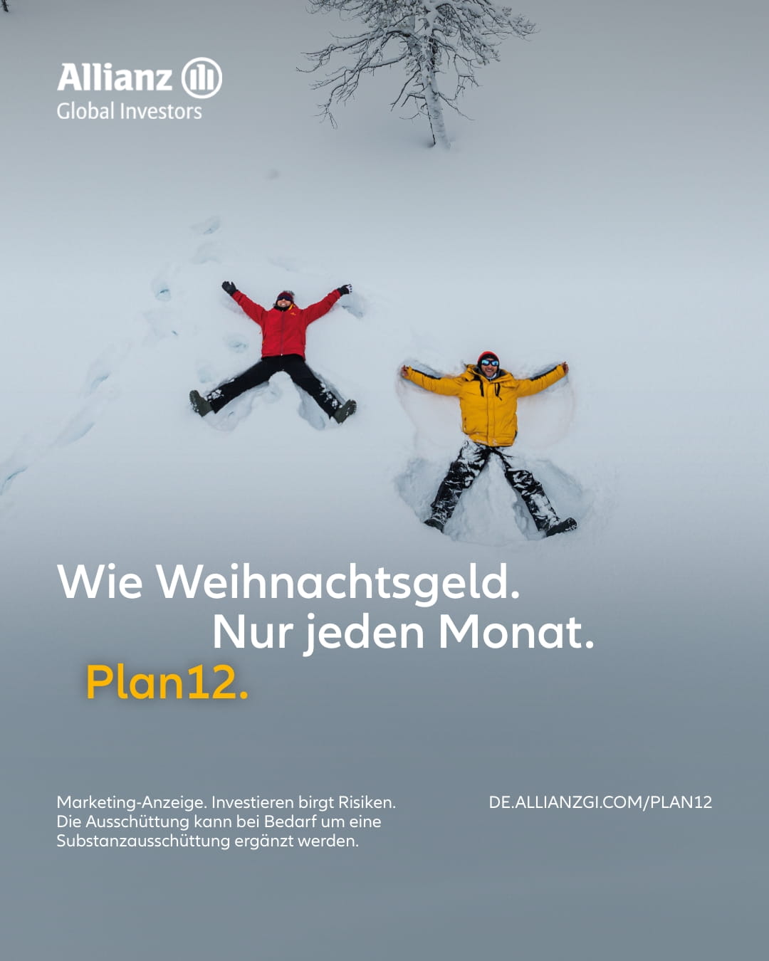 Plan12 steht für bestimmte Anteilklassen sorgfältig ausgewählter, aktiv gemanagter Fonds von Allianz Global Investors, die speziell darauf ausgerichtet sind, monatlich eine Ausschüttung zu zahlen. Das heißt: 12 Auszahlungen pro Jahr – direkt auf das Konto der Anleger.